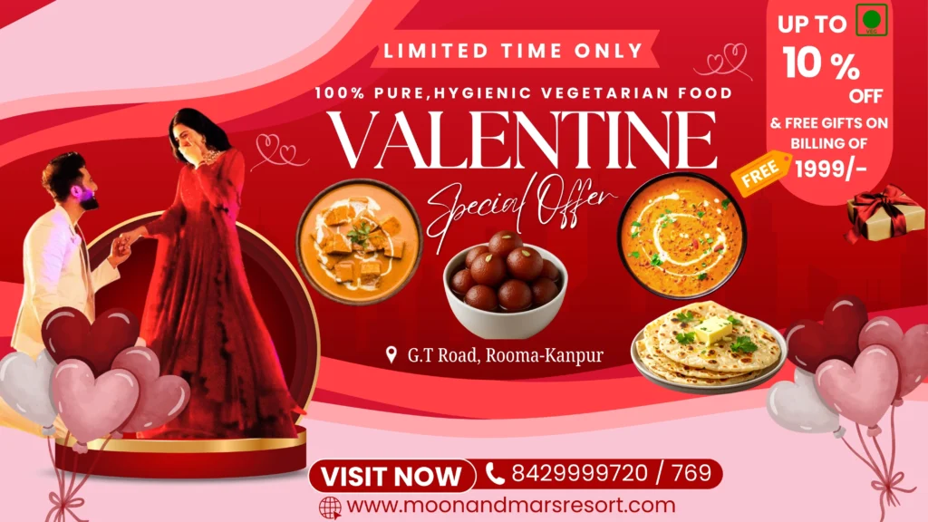 This Valentine’s Day Moon & Mars Resort in Kanpur is offering a special treat for couples. Under the resort’s “Valentine’s Special Offer” guests will receive a 10% discount on their dining bills. That means if you come to enjoy lunch or dinner at our resort you will get 10% off your total bill. This offer is available for both married and unmarried couples.